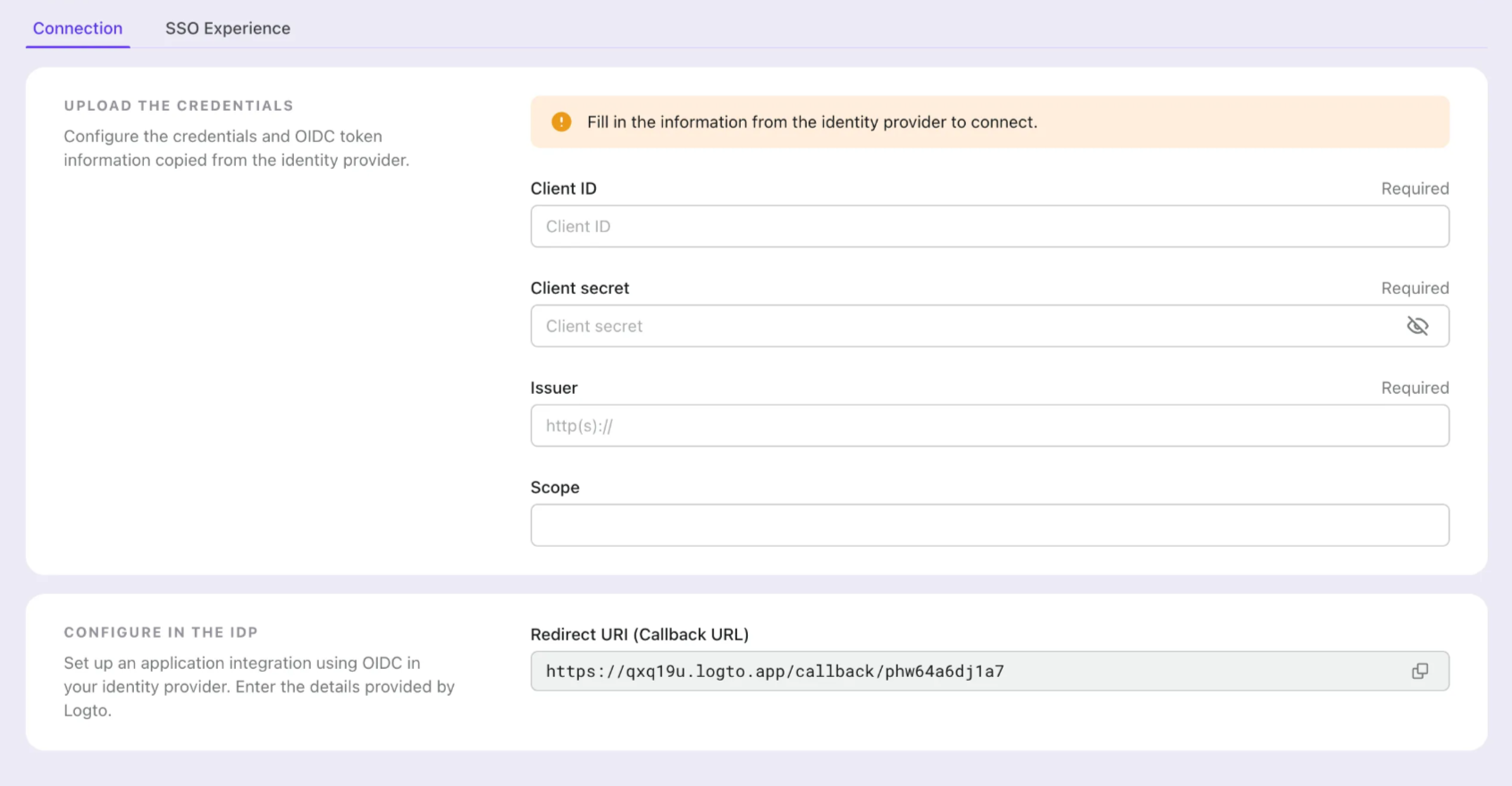 Sign-in redirect URIsusing the Logto SSO connector's callback URL.